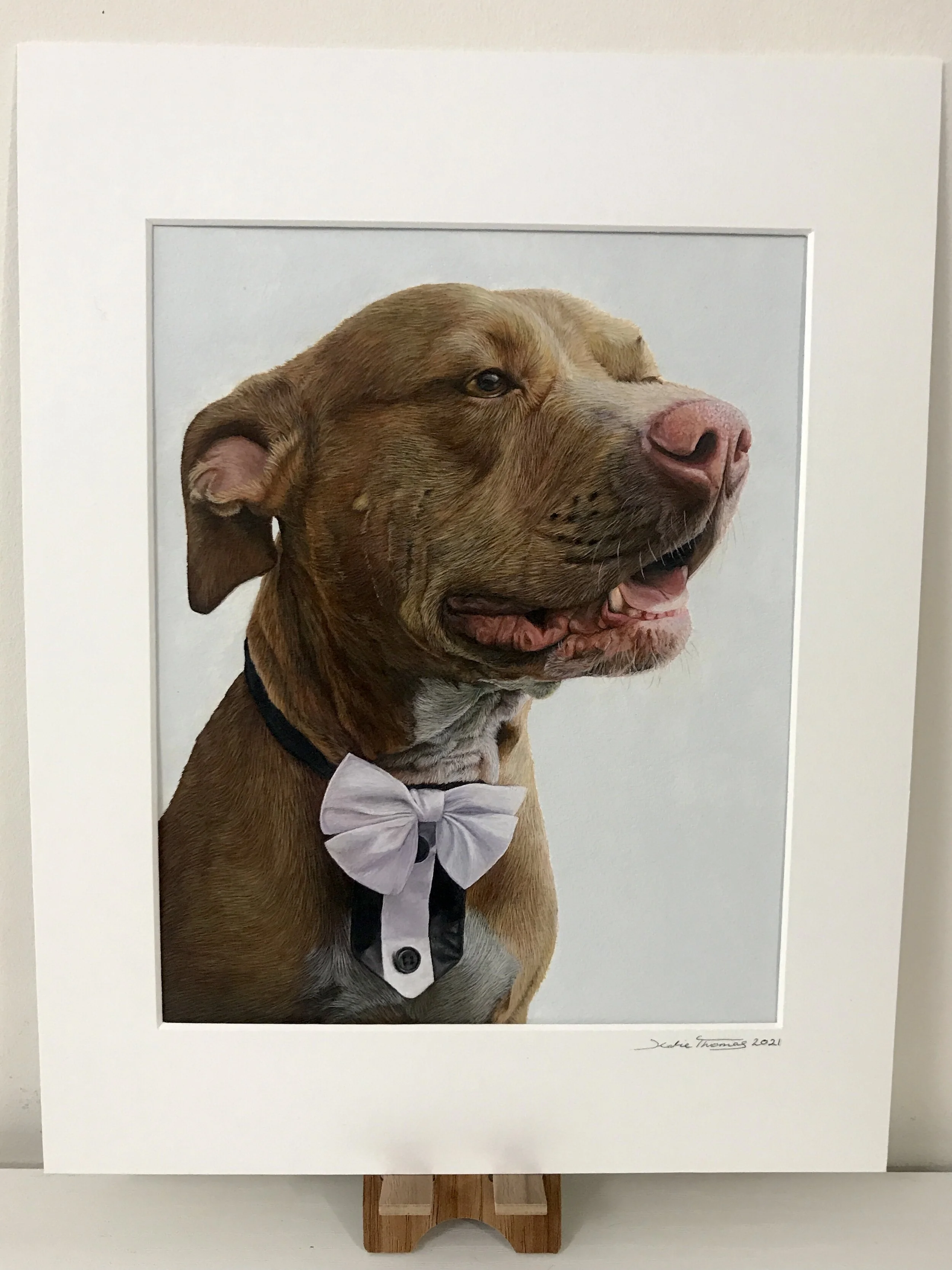 My name is Katie Thomas - an award-winning UK artist specialising in custom pet portraits of dogs, cats, horses and more! I create detailed, hand-painted acrylic portraits designed to capture the unique character of your pet.